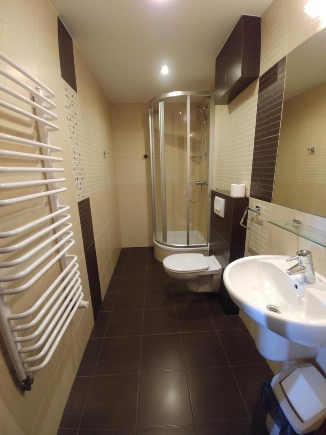 Pokój trzyosobowy typu Budget. The triple room features a wardrobe and parquet floors, as well as a private bathroom boasting a shower. This triple room provides heating and a flat-screen TV. The unit has 3 beds. Pokój Trzyosobowy - 3 osobowy. Powierzchnia pokoju ok.: 1 mkw. ;