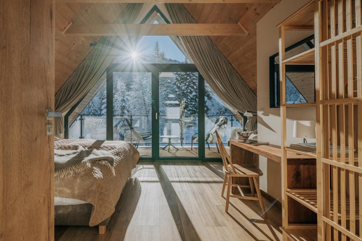 Domek z 2 sypialniami. This spacious chalet comes with 1 living room, 2 separate bedrooms and 2 bathrooms with a shower and a hairdryer. Guests can make meals in the kitchenette that features a stovetop, a refrigerator, a dishwasher and a microwave. The air-conditioned chalet features a flat-screen TV, a washing machine, a coffee machine, a seating area as well as mountain views. The unit has 4 beds. Domek - 7 osobowy. Powierzchnia pokoju ok.: 72 mkw. ;