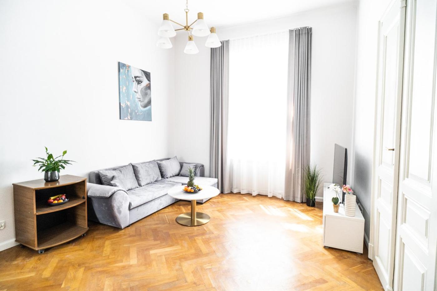 Apartament z 1 sypialnią. Featuring a private entrance, this air-conditioned apartment comprises 1 living room, 1 separate bedroom and 1 bathroom with a shower and a hairdryer. Guests can make meals in the kitchenette that is equipped with a stovetop, a refrigerator, a dishwasher and kitchenware. The apartment provides a washing machine, a tea and coffee maker, a seating area, a flat-screen TV, as well as a quiet street view. The unit offers 2 beds. Apartament - 4 osobowy. Powierzchnia pokoju ok.: 50 mkw. ;